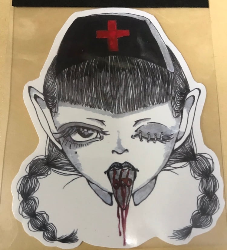 日花梨さんのオリジナルステッカー ゴシックでホラーなステッカーです。 サイズ 約 7.5㎝×6.5㎝ ※消費税、送料、base手数料(決済手数料+サービス利用料)込みとなっております。